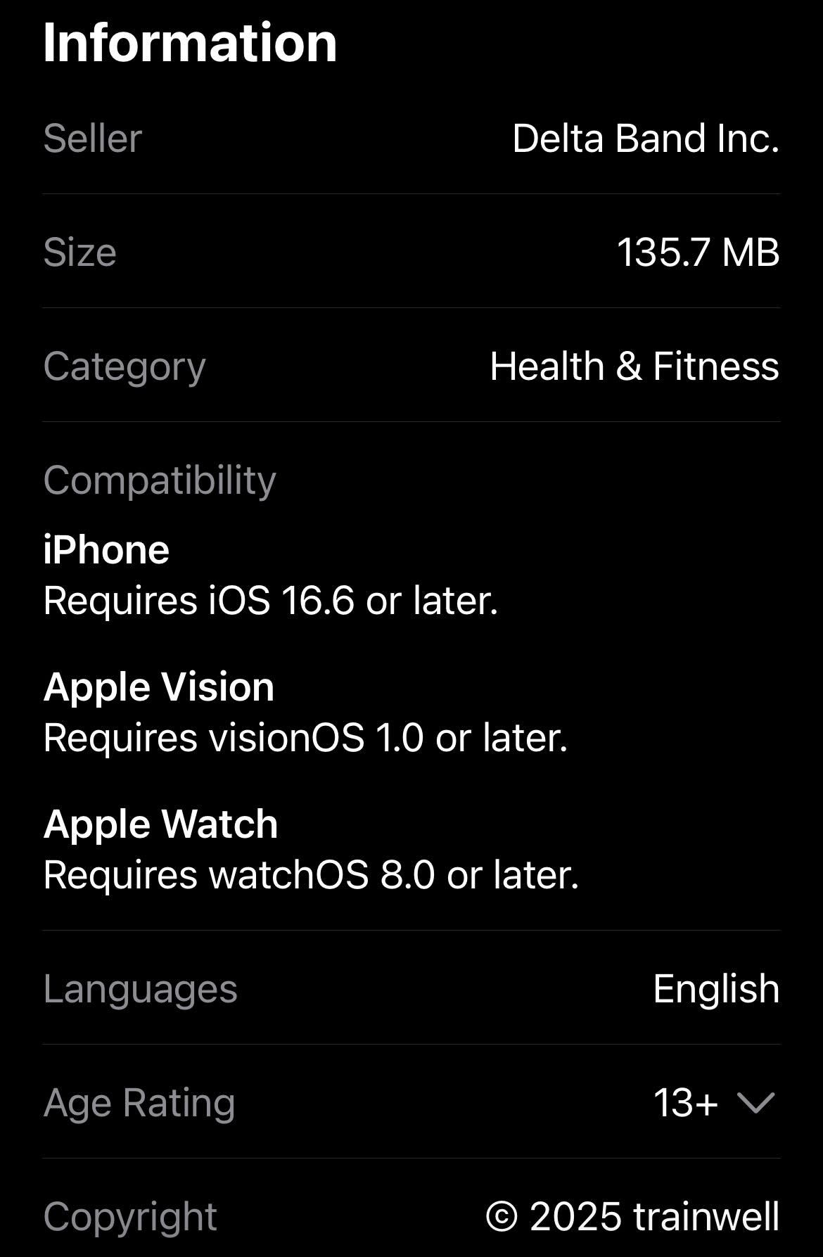 The trainwell app requires a certain minimum OS version in order to work properly on your device. You can find this on the App Information page in the App Store by scrolling down to Information, and opening Compatibility.